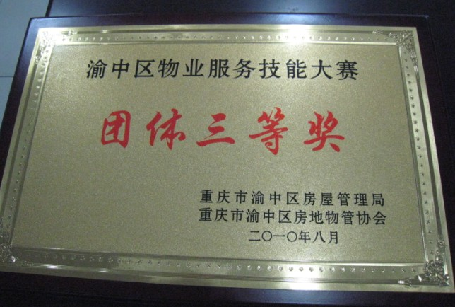 ②榮獲“渝中工匠”杯2018年物業服務技能大賽團體二等獎、保安分項二等獎,石油路街道保安技能比賽三等獎,全國白蟻技能大賽重慶賽區選拔賽第9名。