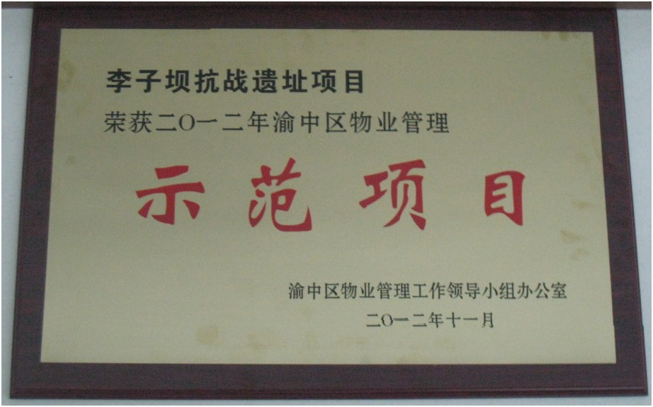 2012年李子壩抗戰遺址項目榮獲渝中區物業管理示范項目