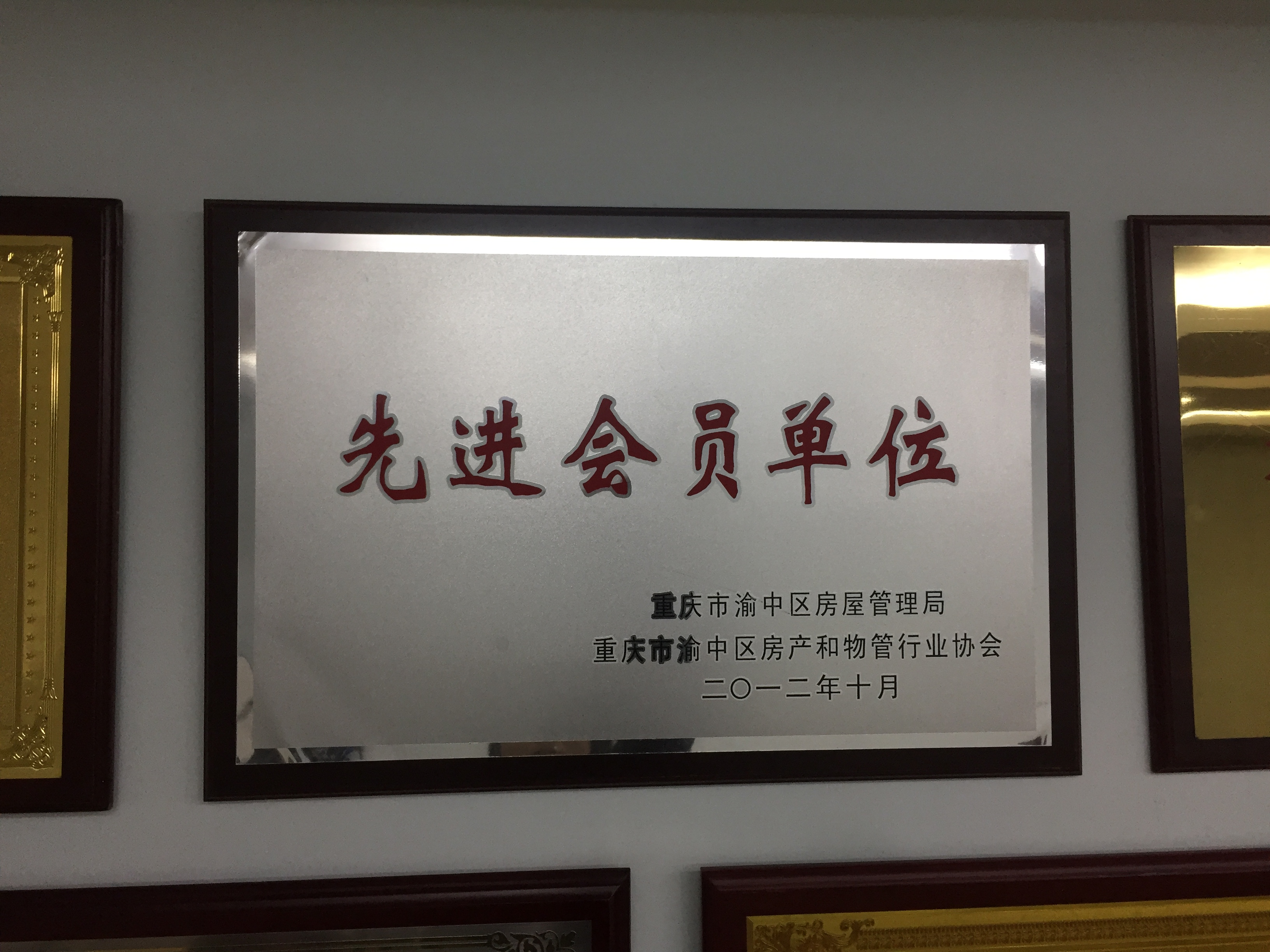 2012年重慶市渝中區房屋管理局授予先進會員單位