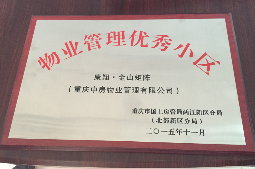 2015年重慶市國土資源局兩江新區(qū)分局授予康翔·金山矩陣物業(yè)管理優(yōu)秀小區(qū)